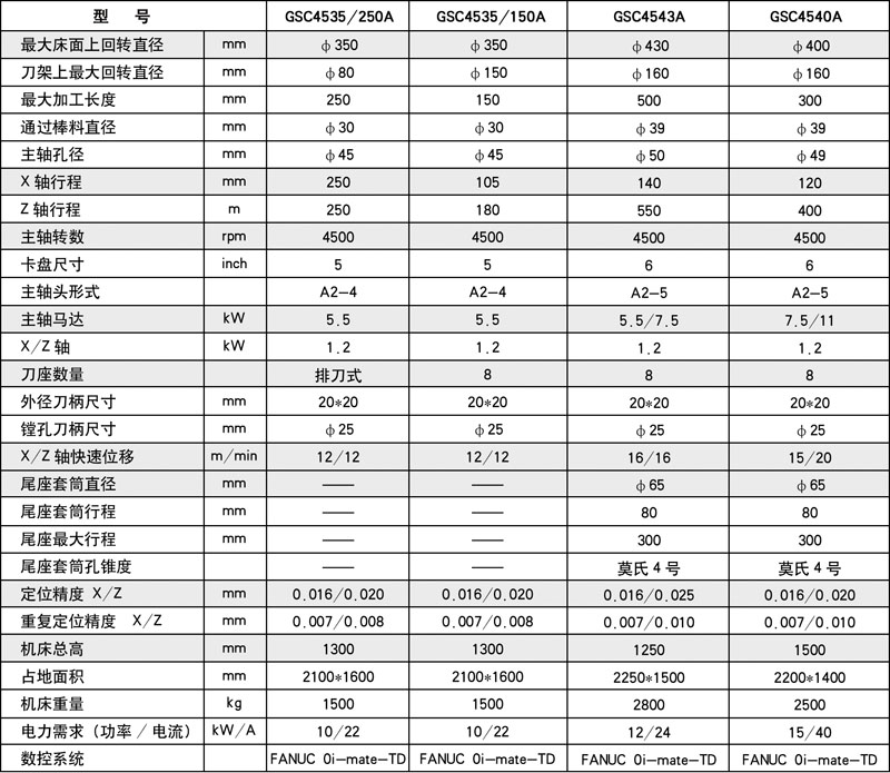 GSC45系列臥式斜床身全功能數控車床是一種中等規格、高效通用自動化機床。該系列機床配備了先進的FANUC 0i-Mate-TD系統,具有CNC標準功能,同時配裝八/十/十二工位液壓轉塔刀架或排刀裝置,以滿足切削時自動換刀需要,可完成多種工序的車削加工。該機床廣泛適用于軍工、汽車、航空、模具等制造行業的各種零件的精密加工。同時由于機床剛性好,加工精度穩定,適合于各種軸類、盤類零件的中、大批量生產